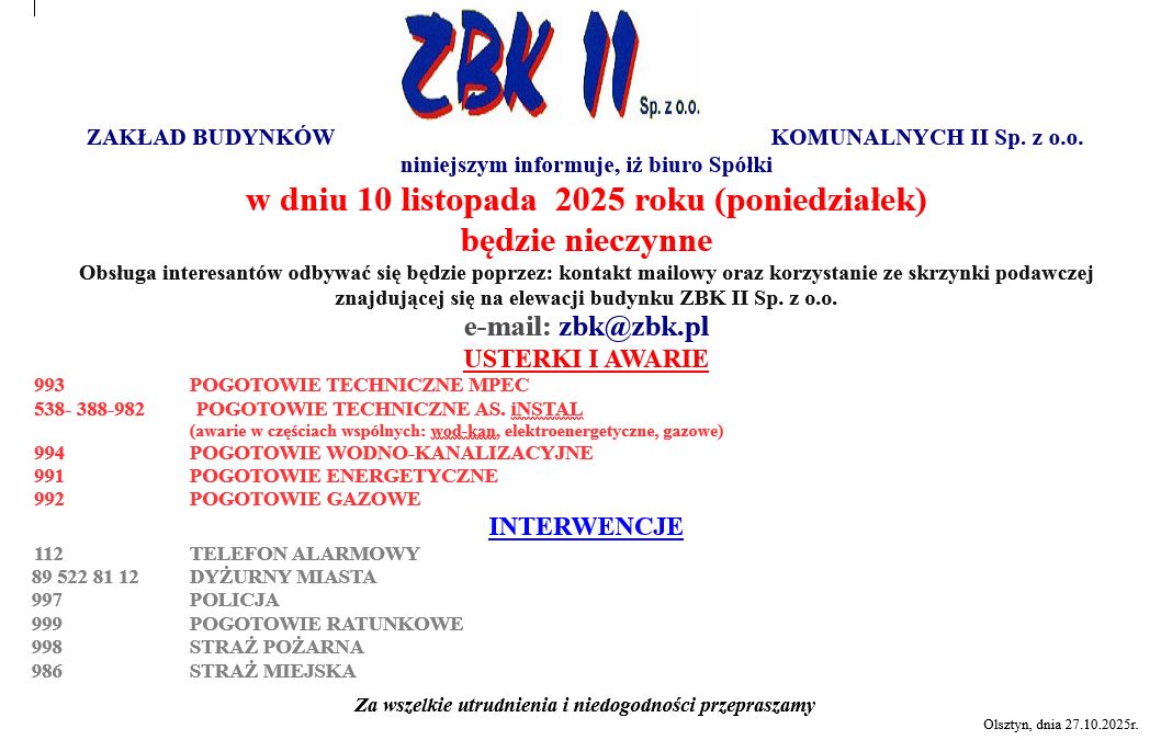istnieje możliwość zgłaszania usterek , stanów liczników itp.poprzez naszą stronę internetową